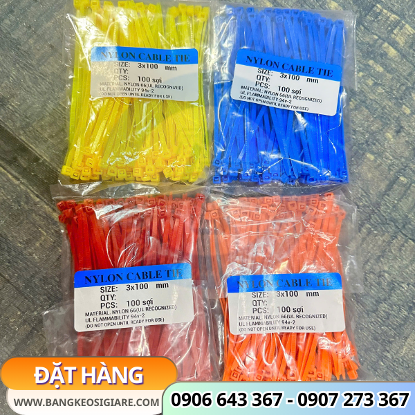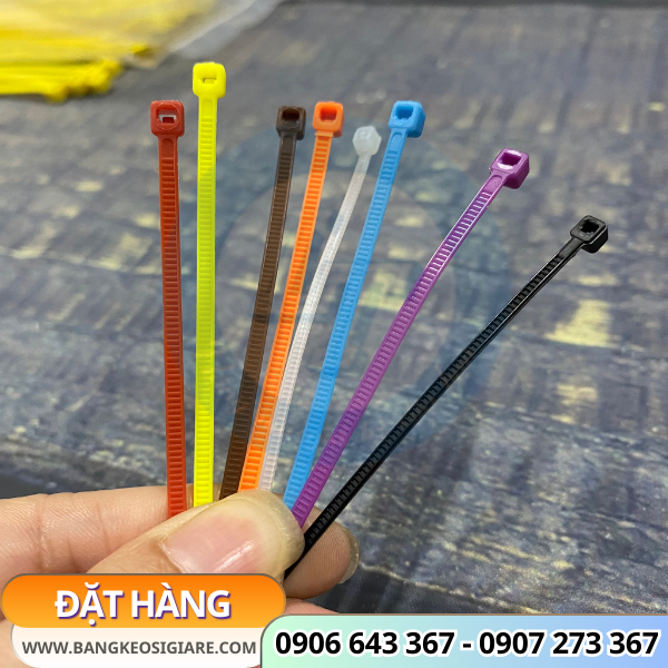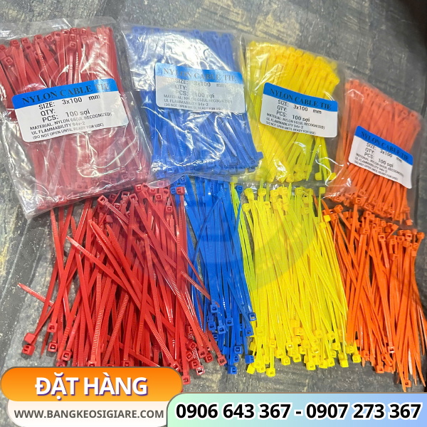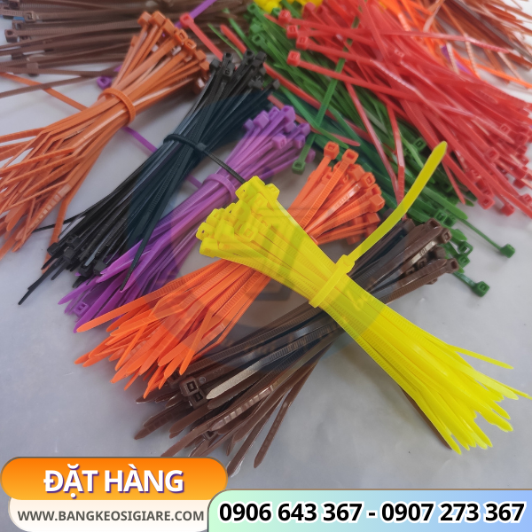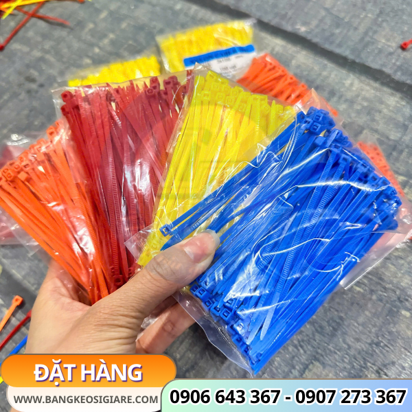 Dây rút đóng gói rất tiện lợi, quy cách 100 sợi/bịch với đa dạng màu sắc: đỏ, xanh, vàng, cam, tím, trắng, đen,…