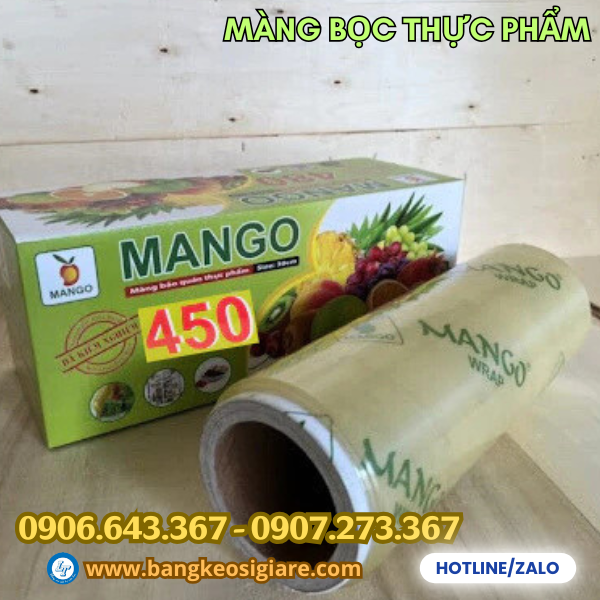 Mango là thương hiệu màng bọc nổi tiếng trên thị trường Việt Nam, được làm từ nhựa PVC an toàn cho sức khoẻ và chuyên sử dụng bọc cho thực phẩm. Sản phẩm được phân phối ra thị trưởng với các đặc điểm nổi bật như: