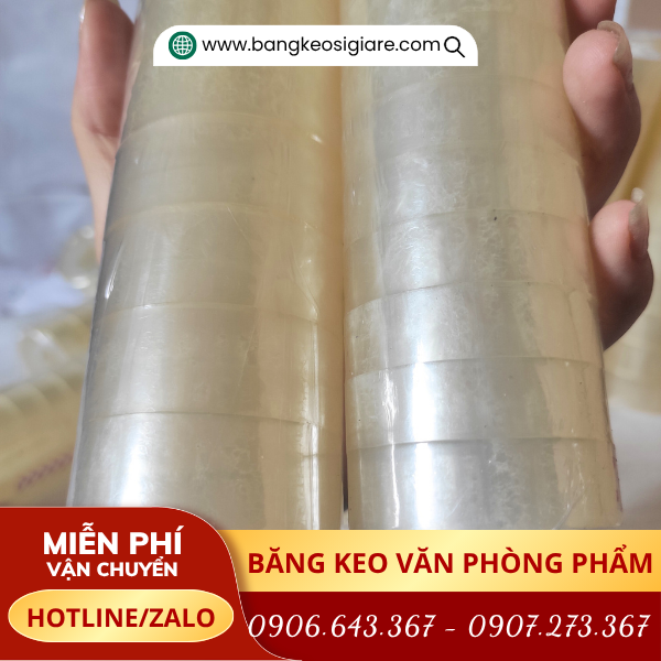 Băng keo văn phòng phẩm là loại băng keo chuyên dụng, phổ biến trong môi trường văn phòng, trường học và gia đình. Được làm từ màng nhựa OPP và lớp keo dính acrylic, sản phẩm này thường có kích thước nhỏ gọn (1f2, 1f8).