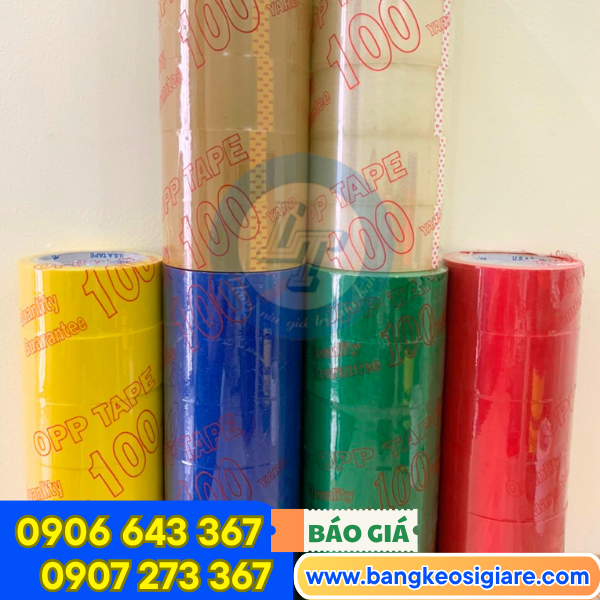 Băng keo trong/đục (OPP): Đây là băng keo thông dụng với đầy đủ kích thước (12mm, 24mm, 36mm, 48mm, 60mm, 70mm,...) và độ dày màng từ 40mic đến 50mic.